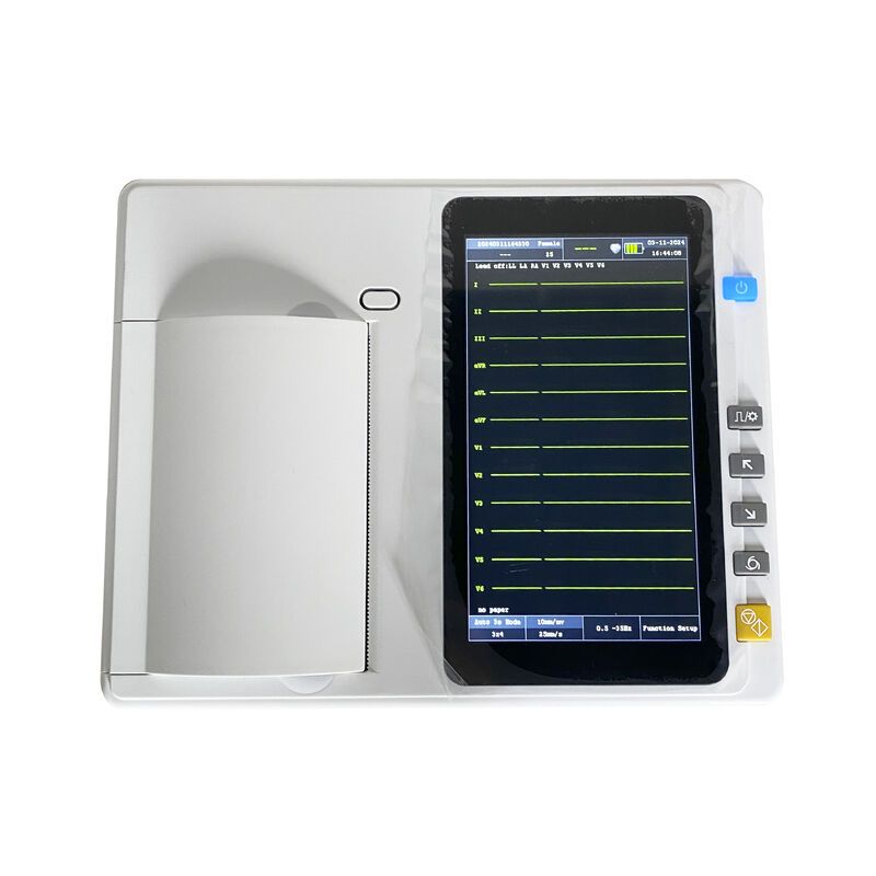 Ten aparat EKG jest idealny do użytku w szpitalach i klinikach jako monitor EKG w celu wspomagania diagnozowania i monitorowania schorzeń serca. Jest to cyfrowy aparat do elektrokardiografii , który wykorzystuje drukarkę termiczną do nagrywania. Urządzenie umożliwia analizę w czasie rzeczywistym i offline oraz posiada alarmy dźwiękowe i wizualne dla łatwego monitorowania. Urządzenie wykonane jest z wytrzymałego tworzywa sztucznego i posiada certyfikat ISO.